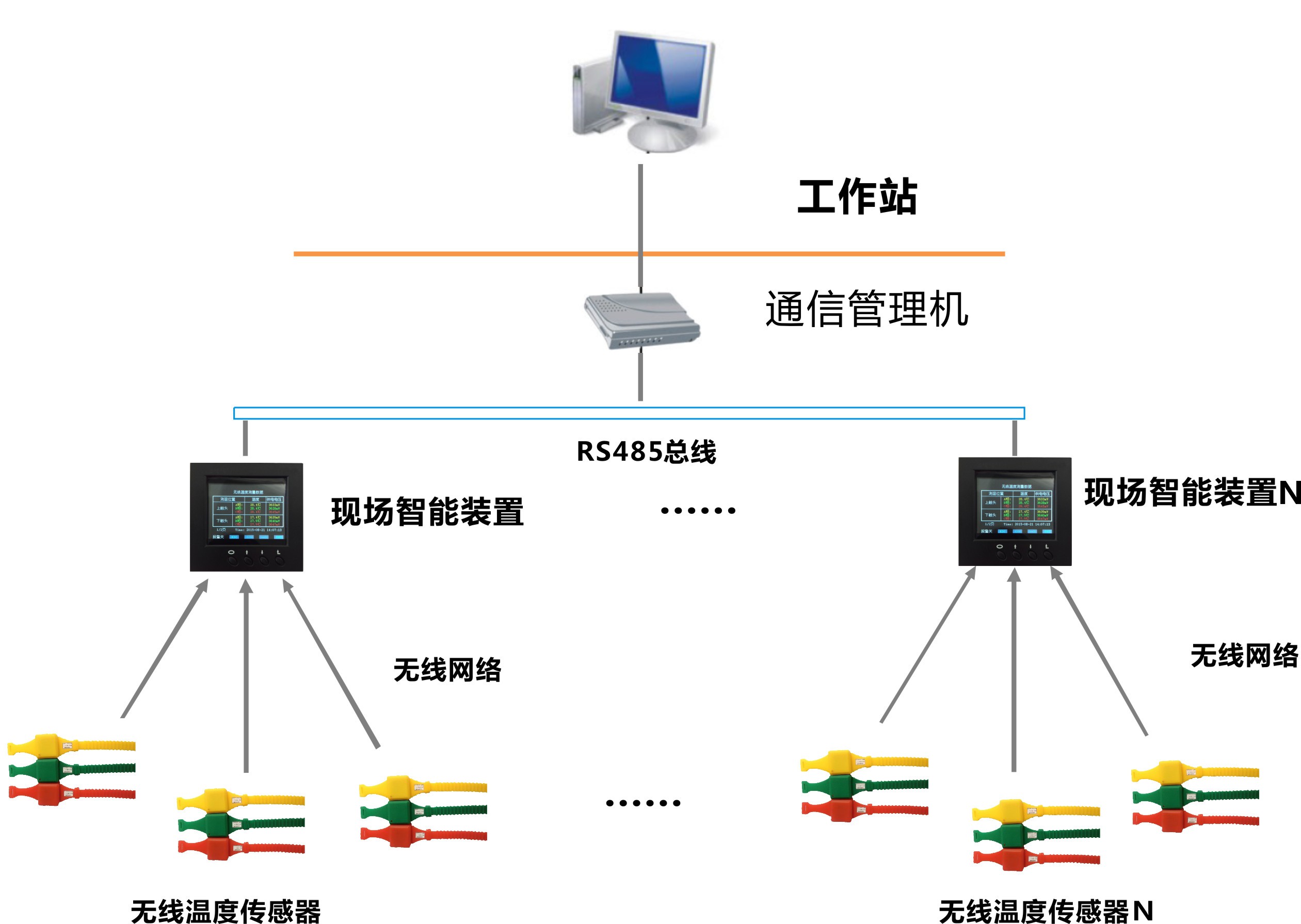 無線式溫度監(jiān)測系統(tǒng)具有極高的可靠性和安全性,且價格低廉,可直接安裝到每臺高壓開關(guān)、母線接頭、戶外刀閘或變壓器上。系統(tǒng)配備標(biāo)準(zhǔn)通訊接口,可聯(lián)網(wǎng)運行。通過上位機軟件,可記錄高壓設(shè)備實時運行溫度的數(shù)據(jù)。為高壓設(shè)備的維修提供累積數(shù)據(jù),實現(xiàn)了高壓設(shè)備熱故障預(yù)知維修。